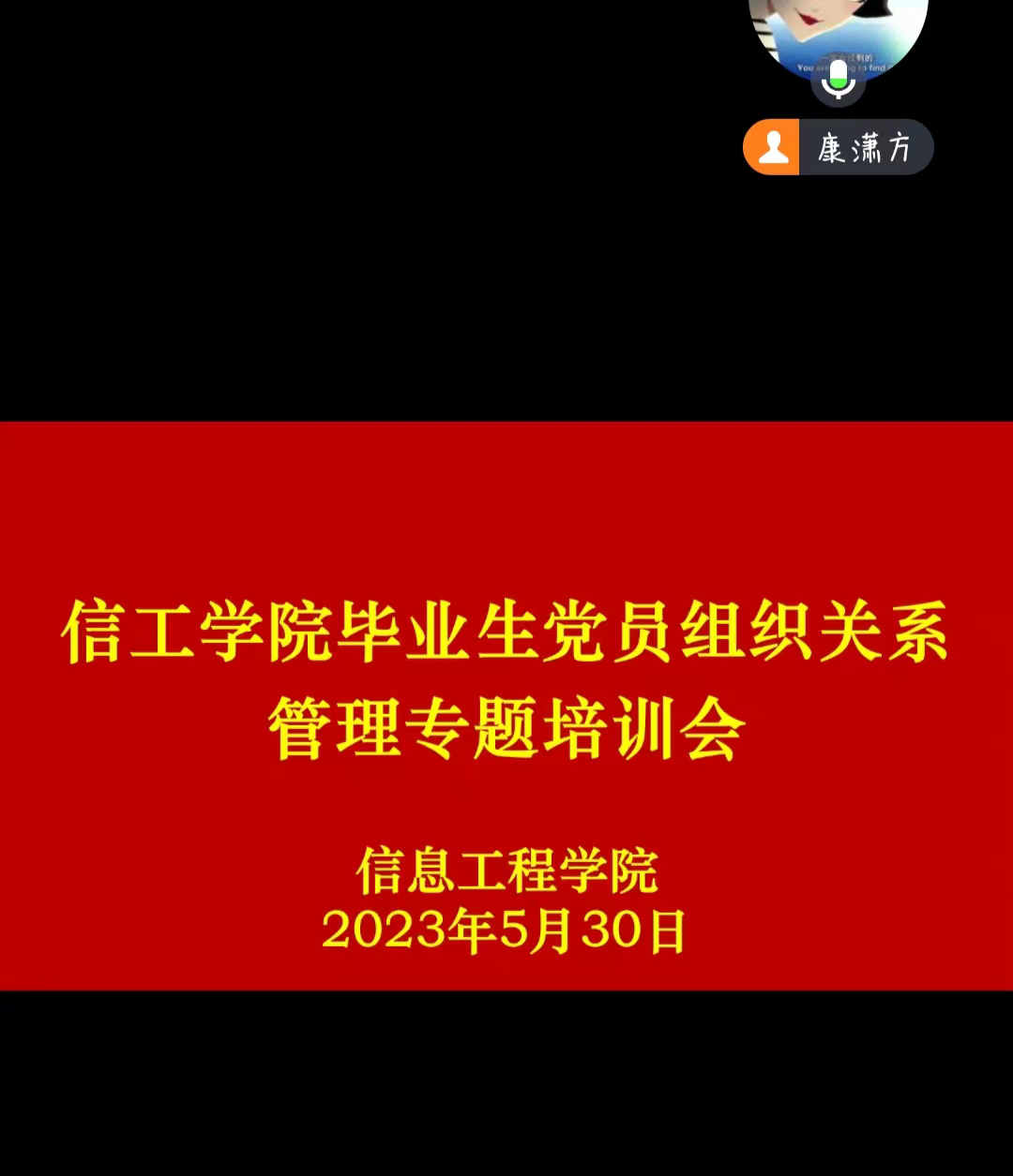 为切实加强毕业生党员教育和管理,确保2023届毕业生党员组织关系顺利转接,5月30日晚上8点,太阳成集团tyc122cc员工党建管理中心在腾讯会议APP举行了2023届毕业生党员组织关系管理专题培训会。2023届毕业生党员线上参加培训,培训会由学院专职组织员康潇方老师主持。