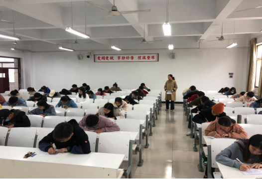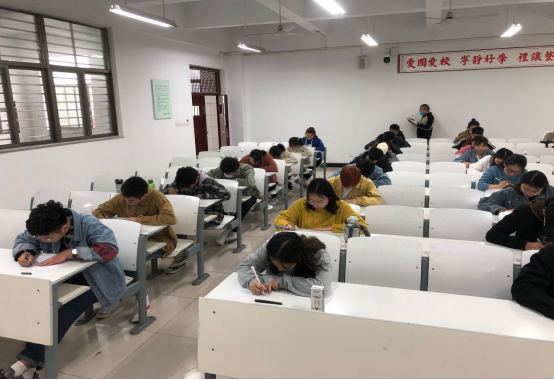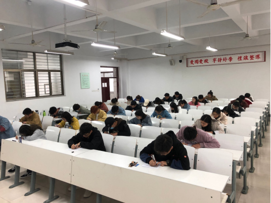 考场之中,员工严格遵守考场纪律,仔细审题,认真答题;无交头接耳,左顾右盼现象。监考老师尽职尽责,采用一前一后、轮流巡视监考模式。整个考场呈现一幅严肃安静景象,考纪严谨,考风端正。