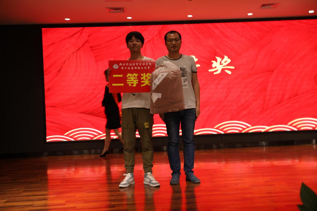 本次闭幕晚会形式多样,节目中穿插抽奖活动,为同学们带来了精美礼品。期间,还进行了本届网络文化节中评选出的优秀作品展示,作品弘扬时代主旋律,突出网络文化价值引领作用,让在场观众感受到了参赛作品的深厚内涵。