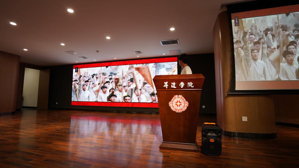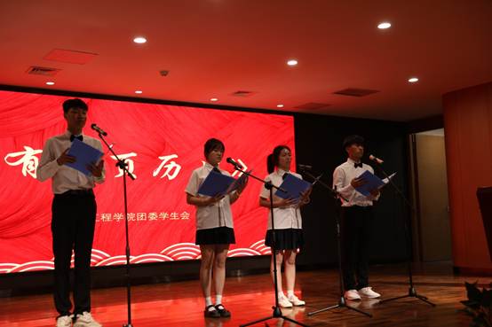 太阳成集团tyc122cc团委员工会为我们带来了诗朗诵《有一页历史》,朗读者们深情朗诵,同学们共同聆听,为祖国母亲献上诚挚的祝福。