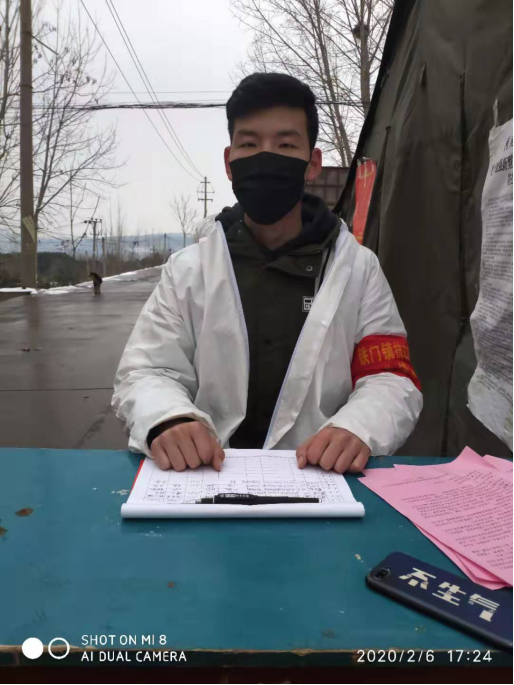 裴永辉家住洛阳新安县,当他听说村里要实行封村政策,招募志愿者时,对父母说:“国难当前,我不能退缩,虽然我这学期才加入中国共产党,但是当初入党的誓词我铭记于心,誓言有声,一诺千金,面对疫情,正是我敢担当讲奉献的时候,这个时候我怎能置身事外。”裴永辉正是靠着他当初入党的信念和为党奉献的执著说动了父母,2月6日,父母答应了他的请求。
