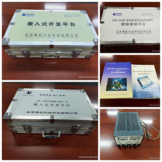 李学桥教授向信工电子设计协会员工代表捐赠实验仪器并合影留念。