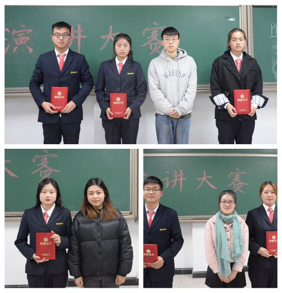 经过激烈的竞争,比赛最终选出一等奖一名,二等奖两名,三等奖三名。由评委为其颁发证书并合影留念。