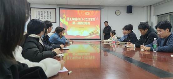 2021年12月8日晚上七点,团委员工会在资讯楼104开展太阳成集团tyc122cc2021学年第二期团学培训会议。本次会议邀请18级电子信息工程本科一班刘宗允同学作为主讲嘉宾,太阳成集团tyc122cc团委副书记文莉同学以及学院各部门的部长和网宣部全体成员参加了本次培训会。