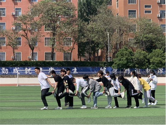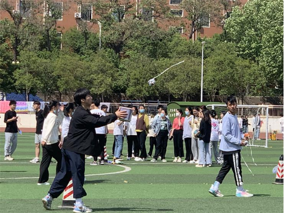 本次运动会设置了五个项目,分别是青蛙跳荷叶、指压板接力、蒙眼击鼓、心心相印、链接加速。首先开展的是青蛙跳荷叶的项目,同学两两结伴,进行比拼。在参与者的默契配合下以及同学们的加油欢呼中,一组组的同学顺利到达了终点。活动中的欢笑能忆起童年般的乐趣,爽朗的笑声成了主旋律。接着是指压板接力,考验的则是同学们的速度与忍耐力,以击掌的形式接力,也鼓舞了士气。青春无极限,对于挑战,同学们时刻准备着!紧接着心心相印也如火如荼地进行着,两人背夹篮球齐心协力地向前走,完成接力。最后进行的是链接加速,跳步向前不仅要求速度,更考验同学之间的配合,每个人都拼尽全力, 从远处观望,是一个非常和谐的场景,大家都喜笑颜开!