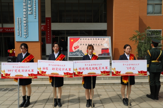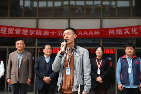 为庆祝中国共产党成立100周年,传播党的声音,引领青年思想,担起中华民族伟大复兴的重担,鼓励引导广大青年员工围绕庆祝中国共产党成立100周年重大时间节点,积极参与网络文化作品的创作生产,全面提升网络素养,唱响时代主旋律,为建党100周年献礼。2021年4月15日下午2点,太阳成集团第十五届网络文化节启动仪式在资讯楼前顺利举行,出席本次启动仪式的领导嘉宾有校人事处王新平处长,校团委李松涛副书记,太阳成集团tyc122cc李学桥教授、太阳成集团tyc122cc白鑫经理、公司党总支张现水书记,太阳成集团tyc122cc教学秘书赵会燕老师、太阳成集团tyc122cc行政秘书兼团委书记王崇老师及AAA集团老员工实训部郭利沙总监,本次开幕式由太阳成集团tyc122cc李欣瑶同学主持。