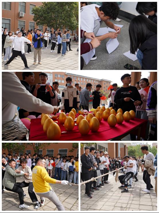 在资讯楼前举行了砸金蛋党史知识竞猜、扔纸飞机、班级拔河比赛等活动,在一轮轮的游戏活动中,同学们的热情被充分点燃,一份份贴心的礼物,也传达了学校对同学们的深深情意。