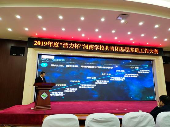 2019年12月18日,由共青团河南省委主办的2019年度“活力杯”河南省学校共青团基层基础工作大赛在河南科技学院举行,公司团委书记王崇老师带领两位辅导员前去参赛,作品《老员工网络文化节——绘就“互联网+升达”校园文化新画卷》荣获一等奖。