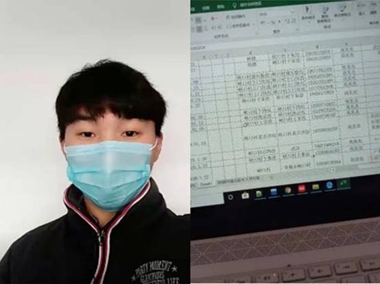 生活中除了直接面对疫情,18级软工2班的曾凡超利用专业特长,帮助所在的峡口村卫生室统计汇总各类与疫情相关的电子文档。他的加入使得所在村的各类数据汇总更加清晰,便捷,得到了该村卫生室领导同事的一致好评,他将所学的知识运用在抗疫一线,更好的在志愿服务的道路上书写了美丽的青春故事。