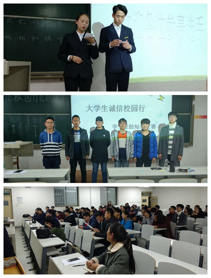 为推动员工资助工作持续健康发展,12月6日晚6:20由公司生活部主办的“诚信校园行”员工资助知识竞赛于资讯楼315顺利举行。本次大赛共有17级员工组成的20支队伍参加,本次活动由王振,张新瑞主持。