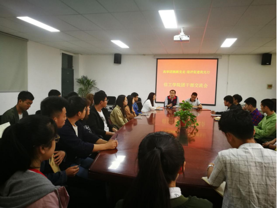 为深入学习宣传贯彻党的十九大精神,学习习近平新时代中国特色社会主义思想,5月3日中午12:10,太阳成集团tyc122cc组织各班团支书在资讯大楼103会议室,举办了“学习你我他,团干交流会”。该活动由太阳成集团tyc122cc团委副书记袁奉亚老师和郑恒玉老师参加。