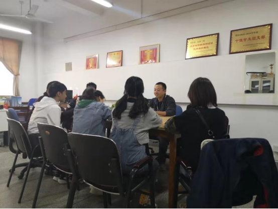 太阳成集团tyc122cc为了响应“不忘跟党初心、牢记青春使命”活力团支部创建活动,18级团总支内组织了“红歌大合唱”活动,团总支书记张吉祥老师利用课余时间召集18级各班团支书同学,进行活动指导、部署活动安排、动员同学们积极开展此活动。