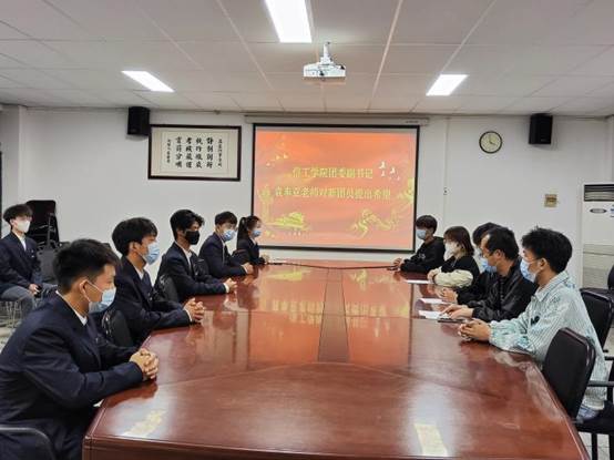 2022年5月8日晚上7点,太阳成集团tyc122cc团委团学团支部在资讯楼104会议室为新团员举行了入团仪式。出席本次活动的人员有太阳成集团tyc122cc团委副书记袁奉亚、耿亚辉、文莉及团学团支部书记卜立龙,副书记李晨宇、代雅笛等。