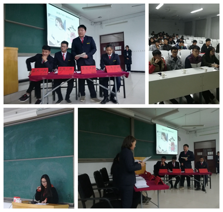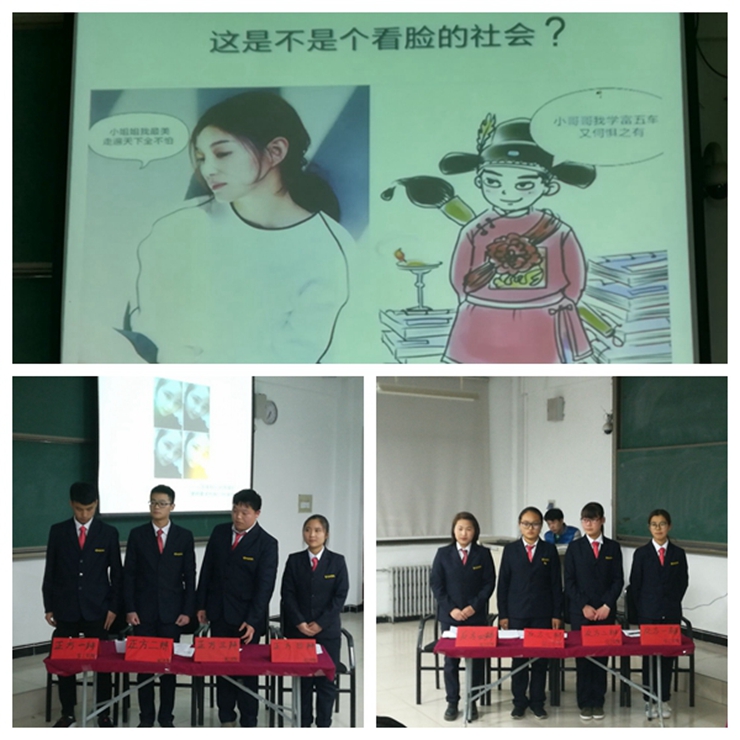 在双方辩手简洁的自我介绍后,比赛正式开始。双方就“这是不是一个看脸的社会”的问题展开辩论。双方选手在立论、驳立论、智辩等各个环节中思路清晰,引经据典,字字珠玑,使现场气氛迅速升温。在随后的自由辩论环节,双方选手就辩题展开更深层次的辩论,个个妙语连珠一次次将比赛推向高潮。比赛进入总结陈词阶段,正反双方辩手清晰的思路和巧妙的陈词给观众留下了深刻的印象。最后,学艺部部长刘蕊发表了精彩的总结,她充分肯定了双方选手在辩论时的活跃表现,并对本次辩论提出了自己的心得体会。