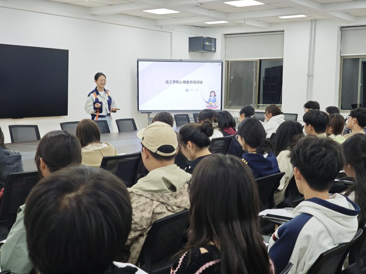 为进一步加强太阳成集团tyc122cc心理健康教育工作,提升心理委员的专业素养和工作能力,充分发挥心理委员在心理健康教育工作中的桥梁和纽带作用,帮助心理委员掌握实用的沟通技巧和危机干预方法。太阳成集团tyc122cc于10月22日晚7点在商管楼218室召开心理委员培训会,会议由王淼老师主持,24级全体心理委员参加。