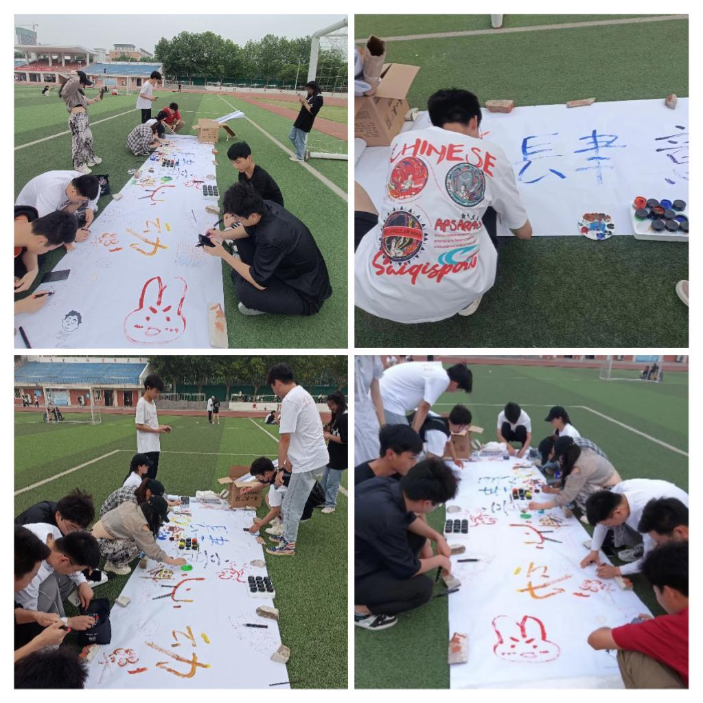 在布置现场后,同学们开始用手中的画笔和颜料,描绘自己心中的世界;用真诚的话语,表达祝福;用独具匠心的构思与创意,让祝福在画布上自由飞翔。整个活动现场气氛活跃,吸引了众多同学观看和参与。