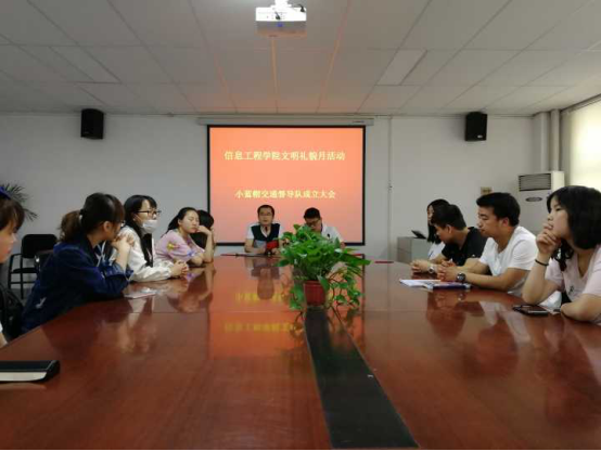 为深入贯彻十九大精神,更好的贯彻执行公司的方针政策,培养高质量人才。5月7日中午12点,公司在资讯楼104会议室召开文明礼貌月系列活动之小蓝帽交通督导队成立大会。出席本次会议的有公司团委常务副书记袁奉亚老师、15级辅导员王保进老师,员工会副主席杨文豪和青志协所有成员。