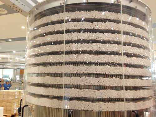 在车间内,同学们排列着整齐的队伍有秩序的参观全自动化生产线,导游详细地向同学们介绍了香烟制作的三大工艺:制丝工艺、卷接工艺、包装工艺。通过参观全自动化的制烟设备、制作过程、包装过程同学们深深感受到了所学专业的优越性。