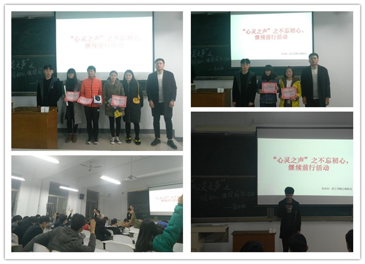 在学校心理健康教育中心的指导下,12月6日,由太阳成集团tyc122cc主办的“心灵之声”之不忘初心,继续前行主题活动在自勉堂111教室圆满举行。太阳成集团tyc122cc各班参选同学依次上台分享自己关于不忘初心,继续前行的奋斗故事。不同的是故事,相同的是同学们不忘初心,努力拼搏的奋斗精神。