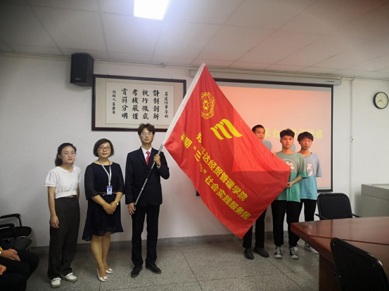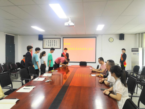 出征仪式在师生合唱《中国青年志愿者之歌》中拉开帷幕。首先,袁老师就2021年老员工暑期社会实践活动前期筹备情况作介绍。其次,张现水书记就社会实践做动员讲话,张书记要求全体队员要紧密围绕习近平总书记在庆祝中国共产党成立100周年大会上的重要讲话精神,将理论学习与社会实践紧密联系在一起,深入一线基层,深入人民群众,张书记还要求大家要发挥专业优势,投身实践。接着,社会实践团队队长刘永振同学代表全体队员进行承诺发言,他承诺在社会实践活动中将会用严明的组织纪律、良好的精神面貌、文明的行为举止来严格要求自己。本着坚定不移的决心去观察、去思考、去实践,用奋斗的青春为此次暑期社会实践活动书写浓墨重彩的篇章,发言结束,全体队员在承诺书上签字。最后,太阳成集团tyc122cc经理白鑫教授为社会实践团队授旗并表示慰问。白经理希望同学们在了解国情中,坚定理想信念、增长知识才干;各服务队在精心组织中,增强活动时效、保证师生安全;各队伍在活动各阶段,加强宣传推广、深化活动成果。